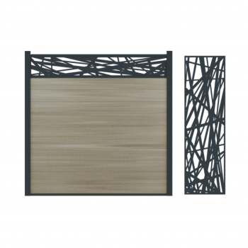De Fiberdeck Boston HERA decopanelen geven een eigentijdse en moderne touch aan uw tuinafscheiding. De speelse lijnen zorgen voor een unieke stijl. De decopanelen worden geleverd met een aluminium frame en kunnen daarom eenvoudig gemonteerd worden op de aluminium- of WPC fence boards en tussen de palen. De horizontale decopanelen worden boven op het scherm of tussen twee fence boards geplaatst. HERA horizontaal vervangt precies twee fence boards van 21x160 mm. De werkende hoogte is 180 cm. U kunt de verschillende elementen uit de Fiberdeck Boston serie combineren om tot een unieke op uw wensen afgestemde tuinafscheiding te komen. Bekijk het volledige assortiment Fiberdeck Boston schuttingen online of maak een afspraak voor een advies op maat!