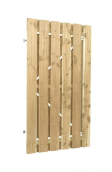 Jumbodeur met slotgat geschaafd vuren 15 mm 100x180, groen geïmpregneerd past bij de geschaafde schuttingschermen met planken van 14 cm. Een geïmpregneerde schuttingdeur gaat jarenlang mee, en is door de handige oogschroeven handig te verstellen qua afstand t.o.v. de paal. Het verzinkte, stalen frame zorgt voor extra stevigheid en is uitgevoerd met geschaafde planken van 1,5x14 cm. De Jumbo planken zijn RVS geschroefd met uitgefreesd slotgat. De planken zijn geïmpregneerd waardoor de levensduur van het vurenhout aanzienlijk wordt verlengd. De deur met totaal 14 verticale planken om en om, wordt geleverd met 2 oogschroeven, maar zonder duimen, zonder deurklink en slot geleverd. Deze kunt u apart meebestellen.