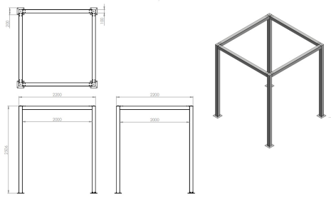 Uitgebreide productinformatiePergola regular 220x220x250 cm zwart gecoat