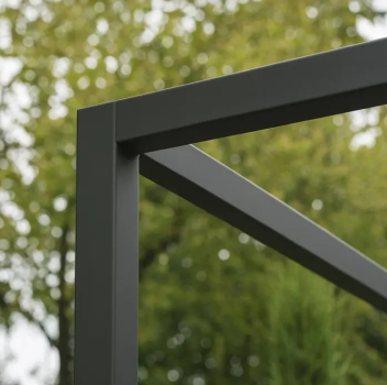 Pergola van zwart gecoat staal in diverse vormen