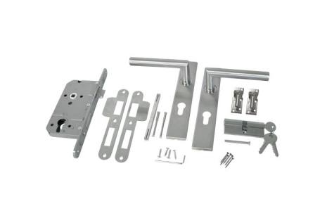 Uitgebreide productinformatieRVS luxe deurbeslagset SKG keurmerk met slotkast, cilinder