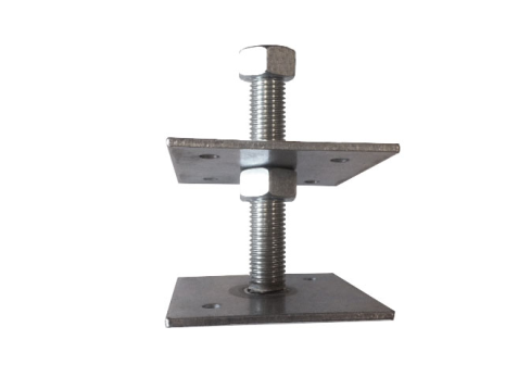 Vloerpaalhouder verstelbaar is een handig stelanker om houten palen van een veranda of overkapping te kunnen verstellen. Inclusief verzinkte verstelbare plaat 8,5x8,5 cm met 2 losse moeren M16.